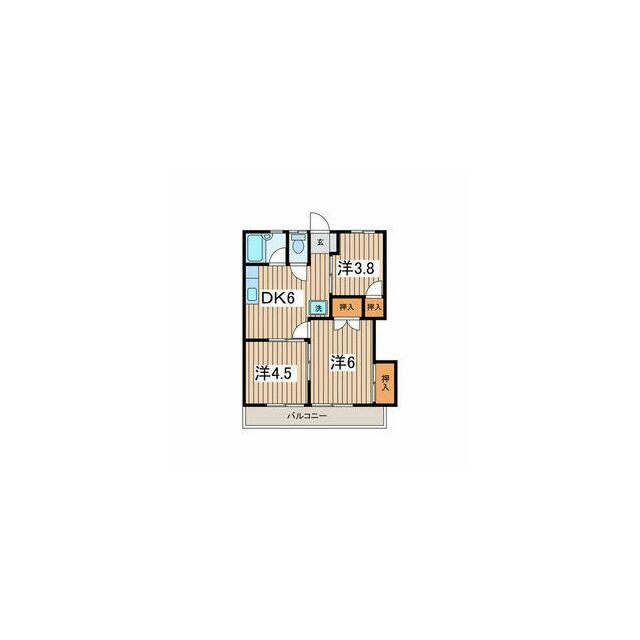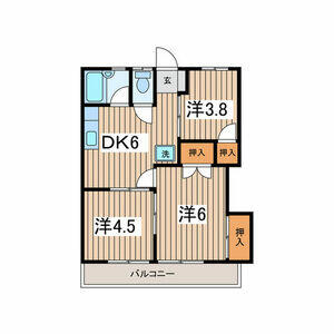 | 間取り | 3DK(DK6 x 洋3.8 x 洋4.5 x 洋6) | 主要採光面 | 南 |