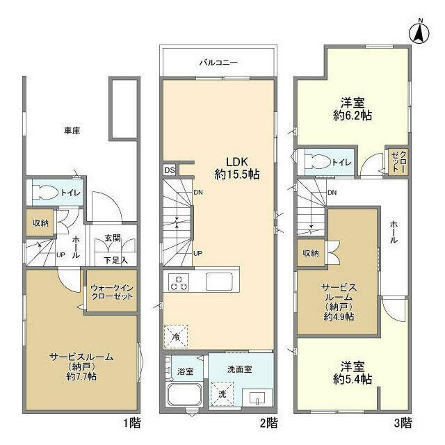 2SLDK(LDK15.5 洋6.2 洋5.4 S(納戸)7.7 S(納) |