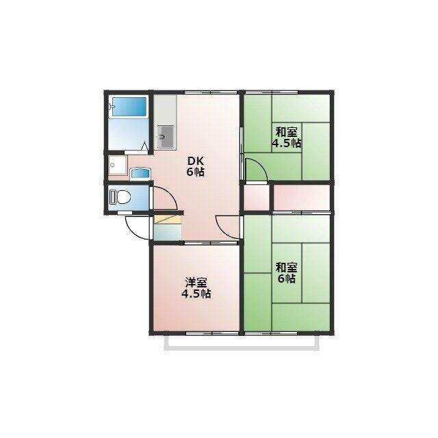 | 間取り | 3DK(DK6、和6、和4.5、洋4.5) | 主要採光面 | 南 |